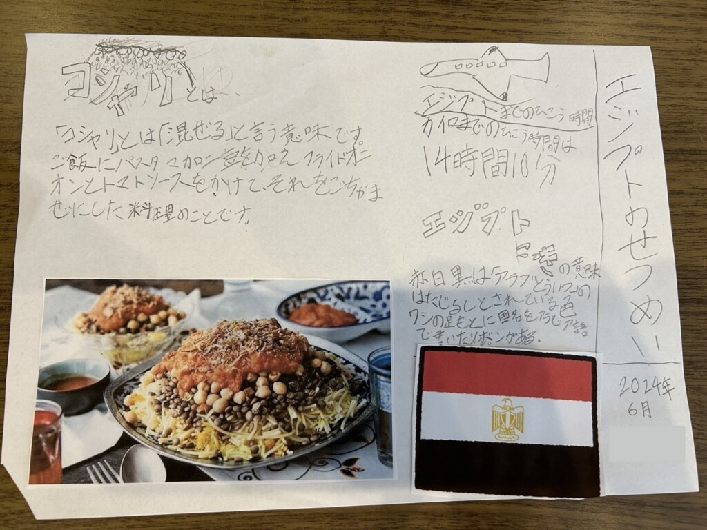 【エジプト】はじめてつくった新聞です!写真やイラストをいれると、ぐっと新聞らしくなりました(3年生男の子)