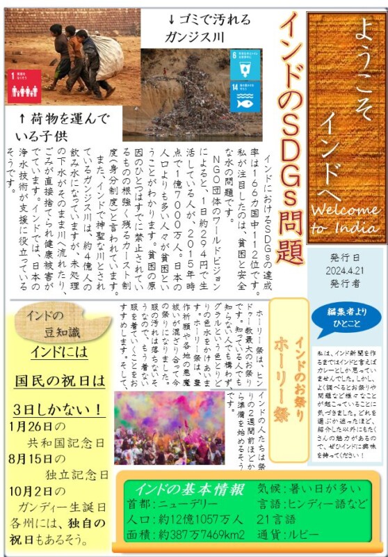 【インド】中継でも気になったゴミ問題について、調べてみました!新聞には載せきれない位、いろいろなテーマを知ることができて楽しかったです(6年生女の子)