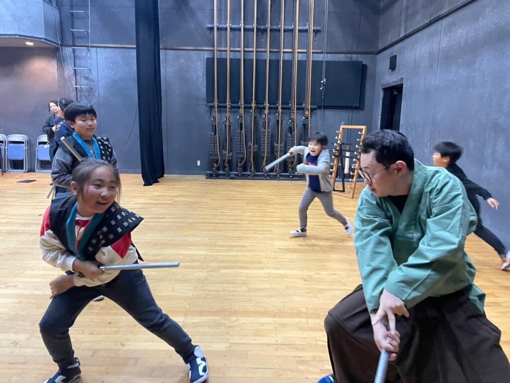 お芝居やミュージカルなどの舞台を客席から見たり、幼稚園や保育園、小学校の学芸会で劇をやったことがある子どもたちも多いですよね!今回の体験では、本物の俳優さんたちから演劇指導をしてもらうという貴重な内容!演目は、子どもたちが大好きな刀を使った殺陣(たて)アクションです。練習→リハーサル→本番の公演まで120分でやり切るので達成感もひとしおです。