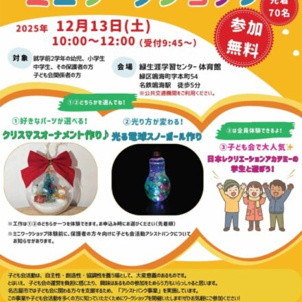 【お知らせ】名古屋市事業で試行実施する小学校高学年・中学生向け「なごや子ども未来探検」の募集...